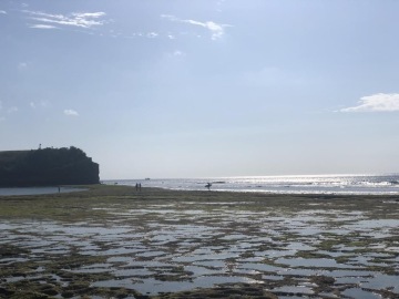 Západ. Pláž pro surfaře. My tam byli při odlivu, takže tam byl klid a minimum lidí. Nad pláží je golfové hřiště.