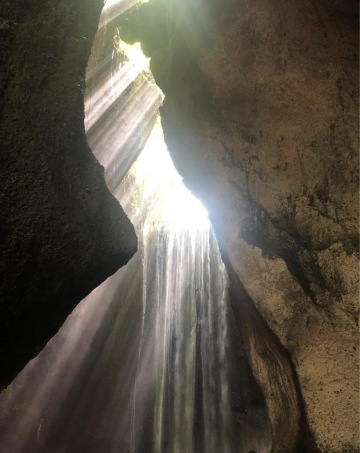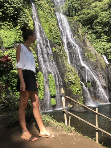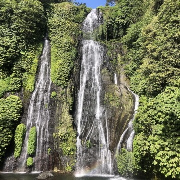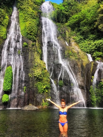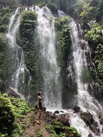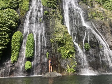 Nejkrásnější vodopád, který jsme viděli! Je hodně daleko od turistických míst jako Canggu nebo Kuta. Vyplatí se k němu jít pokud budete na cestě do chrámu na jezeře Beratan (Ulun Danu Beratan) nebo cestou zpátky z Loviny od delfínů. Cesta je z kopce a občas půjdete po schodech a není nijak náročná, takže můžete jít v žabkách. Cestou zpět můžete využít motorky (taxi) za 25.000 IDR. K vodopádu jsme dorazili v 9:15 a bylo tam tak 6 lidí. Voda byla samozřejmě šíleně studená, tak jsme si nezaplavali, ale někteří byli odvážní a do vody skočili.