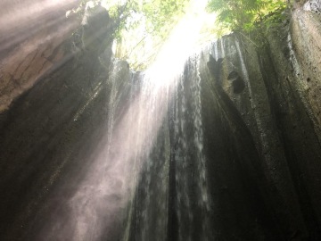 Je vodopád v jeskyni. K vodopádům scházíte spoustu schodů, pak jdete podél potůčku a pak zase schody. Na tuto trasu nemusíte mít žádnou pevnou obuv. Můžete jít klidně v žabkách. Když sejdete schody, tak vpravo máte mini vodopád. Když se vydáte doleva, tak dojdete k vodopádu v jeskyni. K vodopádům procházíte vodou, tak doporučuji boty do vody. U vodopádu je šíleně turistů. Je tam málo místa a každý chce fotku, tak se lidi tlačí co nejblíže k vodopádu.
