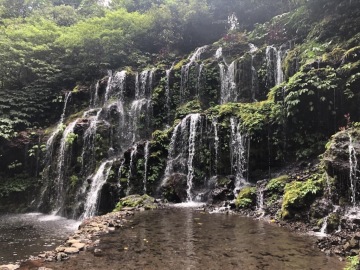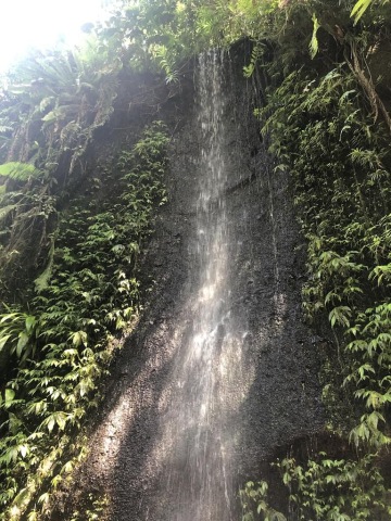 Jsou to 4 vodopády kousek od sebe. Dva jsou naproti sobě, pak jeden velký nejdál a cestou ještě vodopád ze tří menších vodopádů. Nevím, zda je to nějaký skrytý vodopád, ale potkali jsme jen 2 skupinky návštěvníků. Bylo tam tedy 8 lidí včetně nás, takže jsme se míjeli na cestách a nepotkali se u žádného vodopádu a všude jsme byli sami. Voda je studená, a tak se určitě nevykoupete. Tady nebudete potřebovat boty do vody, všude se to dá zvládnout v žabkách. Cestou zpět se můžete zase nechat odvézt na motorce za 25.000 IDR.
