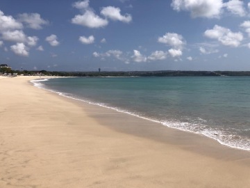 Jihovýchod. Vyhlášená jako nejhezčí pláž na Bali. Je tu hodně resortů a v okolí plno restaurací a obchodů. Pláž je dlouhá a je to spíše pro rodiny s dětmi než pro mladý párty lidi.
