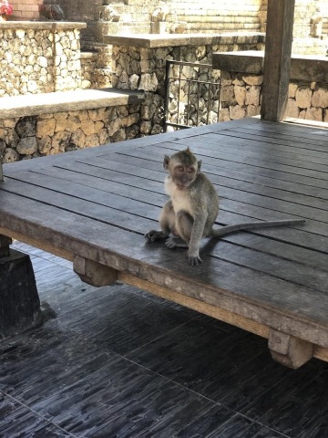 Chrám na skále na jihu ostrova. Běžte tam při západu slunce. U vstupu dostanete fialový sarong s oranžovým šátkem, který si uvážete kolem pasu. Je tu hodně opic a samozřejmě jsou strašně drzé. Našemu řidiči opice ukradla klíče od auta a musel volat šéfovi, aby mu přivezl náhradní :D.