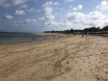 Západ. Nádherná pláž přímo u letiště, takže z pláže koukáte na přistávací letadla. Byli tam ale velké vlny, tak nebylo možné se koupat.