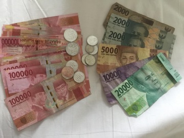 Rovnou na letišti jsme si vybrali peníze z bankomatu. Pozor – dá se vybrat pouze 2.500.000 IDR, a to maximálně 4x. Mimo letiště vybírejte jen z bankomatů u banky.