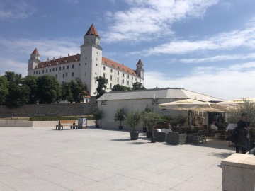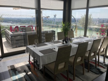 Teď něco mimo centrum - Restaurant Parlament najdete u Bratislavského hradu. Nedá se tam parkovat, tak jeďte Uberem nebo MHD. Z centra se dá ale dojít i pěšky, jen je to do kopce. Restaurant má nádherný výhled na řeku a hned za ní je zmíněný hrad. Jídlo výborný!