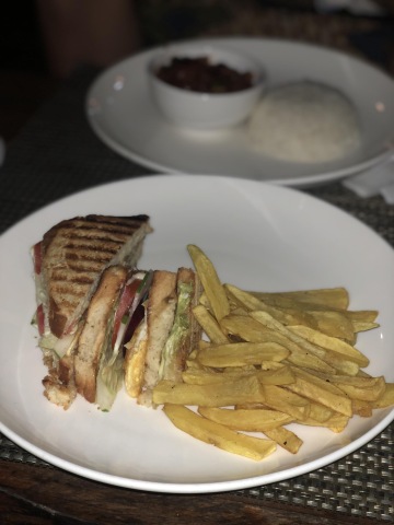Jelikož jsme měli v ceně pobytu pouze snídaně, tak jsme si zbytek museli platit. Což jsme si říkali, že nám to nevadí, že si zajdem někam na véču nebo si koupíme nějaké ovoce. Jenže v okolí tohohle hotelu široko daleko nic není!! A tak se musíme stravovat pouze v tomto hotelu, kde večeře na osobu stojí 25 dolarů bez nápojů. Takže za dva jsme dali za večeři, která nám vlastně ani nechutnala něco kolem 60 dolarů. Začali jsme se stravovat na baru u hotelu, kde mají nám více známá jídla, jako těstoviny, jeden burger, pizzu a pak nějaké mořské potvory. Jenže to by nebyl den, aby alespoň 50 % z menu v neměli. A když už si vyberete něco, co mají, např. pizzu, tak řeknou, že nemají mozzarellu a ani žádný jiný sýr. A kdo by si dal pizzu bez sýra. Petra zase chytil žlučník, takže byl na suché rýži a kousek kuřecího za 18 dolarů prakticky 7 posledních dní na hotelu. Mně zhruba 10.tý den chytli jiné potíže, takže jsem zůstala také na rýži za 18 dolarů.