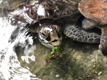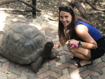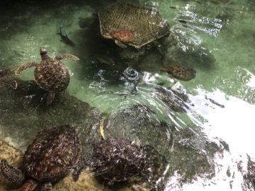 Na výlet jsme vyrazili v 10.hodin a jeli jsme do Nungwi do Baraka Aquarium. Prý jsou na Zanzibaru dvě taková místa se želvami. V jednom je můžete jen krmit a v druhém i plavat. My jeli samozřejmě do toho, kde jsme s nimi mohli plavat. Petr mezi ně s radostí skočil, já to nedala. Jen jsem u nich seděla a krmila je. Nakonec jsem zpětně zjistila, že dost lidí pokousali. Tak jsem ráda, že se mi to nestalo, to bych už do vody nikdy nevlezla :D