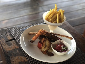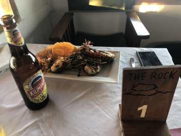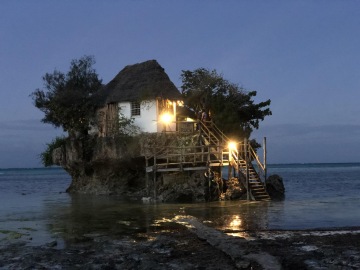 Na pátou jsme měli rezervaci v Rock Restauraci. Pokud tam půjdete ještě za světla, tak v klidu dojdete do restaurace po svých. Čím déle se budete vracet, tím bude přibývat vody a vy si budete nakonec muset vzít převozníka. Do restaurace si musíte udělat rezervaci, jinak Vás tam ani nepustí. Vevnitř se jí a venku je to jen na drink.
