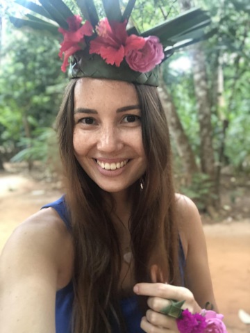 Vyráželi jsme zase v 8:30 hodin. Asi po 15ti minutách jsme dojeli k zahradě s kořením jménem Jumbo. Čekala tam na nás „ Ajrýn“, která nás zahradou provedla. U každého stromku, chroští a trávy nás nechala hádat, co to je za koření nebo ovoce. Na to, že jsem na tom byla i na Srí Lance, tak jsem na vše zase zapomněla a na většinu trávy říkala nevím, nevím, nevím. Uhádla jsem jen Chanel číslo 5, kurkumu a zázvor. Měli tam ještě Durian, muškátový oříšek, kardamon, vanilku, zanzibarský jablíčka, citronovou trávu, kakao, henu, skořici, kafé robusta, pepř, hřebíček a pak zanzibarskou klasiku banány a ananas. Na konci prohlídky nás čekal Butter Fly men, což je místní, který vyleze na palmu, aby vám snesl kokos dolů, cestou něco huláká a zpívá Hakuna Matata. Kokos oseká a dá nám ho vypít. Je to perlivý a dobrý, ale jeden stačí. Další kolega, který se jmenoval Juma, nám z palmových listů upletl koruny na hlavu, Petrovi kravatu a mě náramek s prstýnkem. Ajrýn nás vyzvala, že pokud se nám to líbilo, ať dáme každému spropitné. Dali jsme každému 5.000 šilinků a šli na další stanoviště. Tam nás čekala ochutnávka ovoce. Taky tam měl Tip Box, ale naštěstí si o něj neřekl, tak jsme pokračovali k obchůdku s kořením, čaji a kávou. 1 pytlík nás vyšel na 50 korun. S Ajrýn jsme se rozloučili dalším spropitným 10.000 šilinků a mohli jsme s Ninjou pokračovat ve výletu.