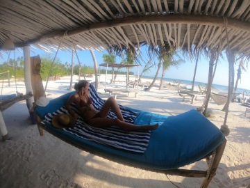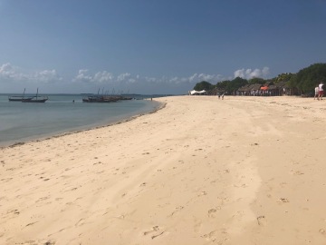 Asi po dvou hodinách jsme želvičky opustili a jeli na oběd a pláž Kendwa. Úplnou náhodou jsme potkali první Čechy na ostrově. Předali nám spoustu informací a zážitků jak ze Zanzibaru, tak i z Filipín a Vietnamu, kam se také chystáme. Tak je tímto zdravím a moc jim děkujeme!!! V Kendwa je minimální odliv a je tu hloubka, tak si můžete krásně zaplavat. Jen asi deset metrů od břehu jsou velké hvězdice. Pláž je písčitá, poměrně široká a nekonečná.