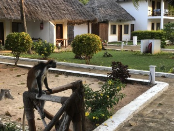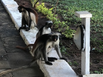 Co je výhoda tohohle hotelu, jelikož se hotel nachází vedle Jozani parku, tak do něj ani nemusíte, protože všude po resortu pobíhá minimálně 6 červených opiček, které se vůbec nebojí lidí.
