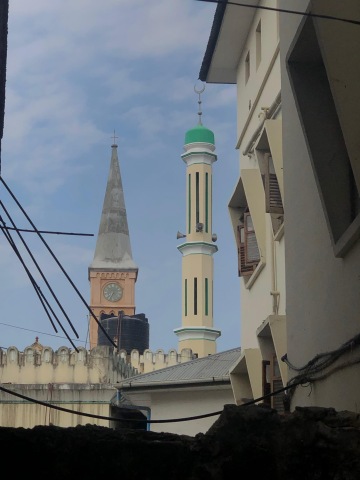 Jel jak kazeťák celý dvě hodiny v kuse. Hned na začátku jsme se zastavili u nějakých dveří a vyprávěl o nich 20 minut a takhle mluvil skoro o každých nějakých větších. Naštěstí nám ukázal i ty do domu Freddieho Mercuryho. Ve Stone Townu toho moc zajímavého není, tak nám ukázal jen pár hlavních památek a pokračovali jsme úzkými uličkami města. V jedné uličce probíhala nějaká hádka, tak navrhl jinou uličku, tam se hned zastavil a řekl, že tamtudy teď nesmíme jít. No stálo tam pár chlápků, ale nic jsme z toho nepoznali.. Tak jsme šli uličkou hádky, držela jsem si telefon, div jsem ho nerozdrtila v ruce. Přežili jsme, vlastně si nás ani nevšimli a dál po sobě hulákali.