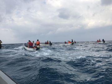 Lodičkou jsme ostrov obepluli a tam byla schovaná modrá laguna. Už jsme se ale nestihli vykoupat ani potápět. Začalo se zatahovat a obloha úplně zčernala a my rychle pelášili zpátky na Zanzibar.