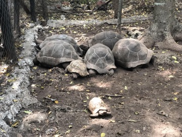 Tyto želvy byly darem od Seychelského guvernéra. Zanzibar dostal původně 4. Dnes už jich tam je přes 100. Na druhém obrázku jsou dvě malé želvičky. Ty jediné jsou přímo ze Zanzibaru.