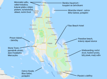 Tento výlet nás stál 90 dolarů pro 2 osoby, včetně oběda a nealko nápojů (voda, cola, sprite, fanta). Při plavbě zpět dali ještě doprostřed lodi Tip Box, tak jsme dávali 10.000 TZS, ale byli lidi, co nedali nic nebo jen 1 dolar. Za celodenní výlet, na kterém se nám věnovali si spropitné určitě zasloužili.