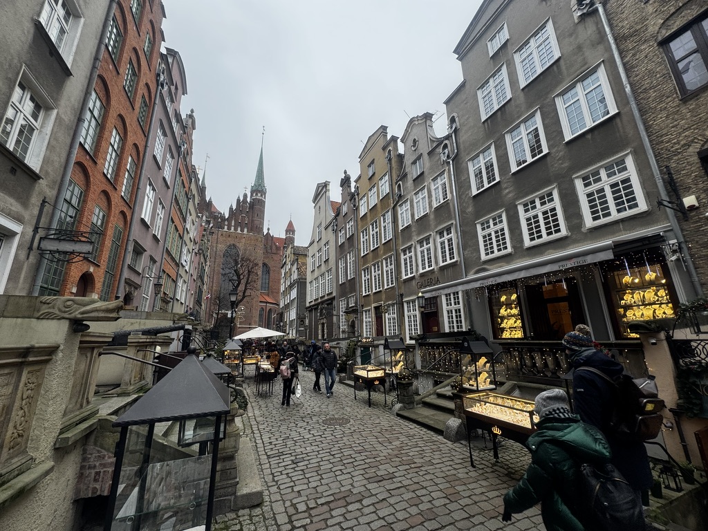 Ulice Mariacka je jedna z nejkouzelnějších v celém městě. Táhne se od Mariánského kostela až k řece Motławě a je typická dlouhými kamennými schůdky a terasami před domy, kde jsou malé galerie, obchůdky s jantarem a útulné kavárny.