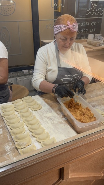 Kam jinam než na polský pirožky. Sice se tu stojí dlouuuhá fronta, ale jídlo je tu neskutečně dobré. Mají tu systém, takže, když už stojíte ve frontě, tak frontu obchází servírka/hosteska, která bere rezervace - jméno a počet osob a nabídce vám něco k pití. Když už jste u vchodu, tak postupně vyvolává jména, dle toho, jak se jim uvolňují stoly. Pirožky tu dělají ručně a máte na výběr z moha možností. Tohle je určitě místo, které byste neměli vynechat!