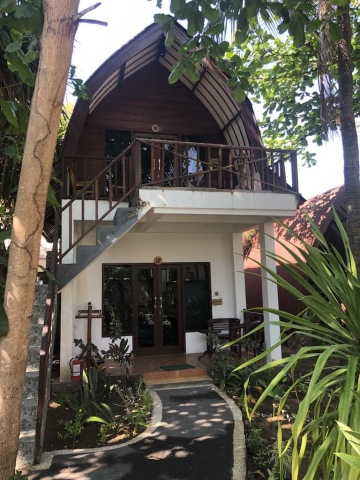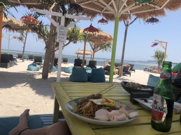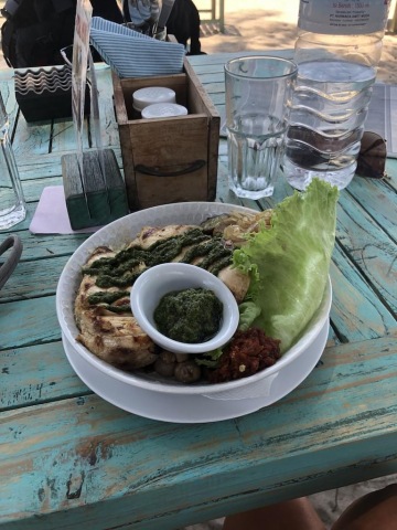 Je příjemná restaurace na pláži, hned vedle Gili Turtle Beach Resort. Vaří výborně, obsluha byla znuděná a pomalá. Za dvě jídla a pití jsme zaplatili 320.000 IDR.