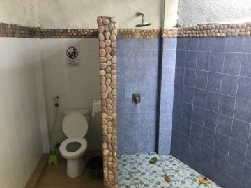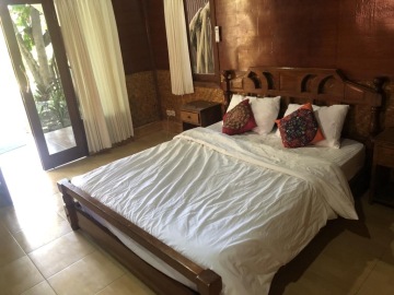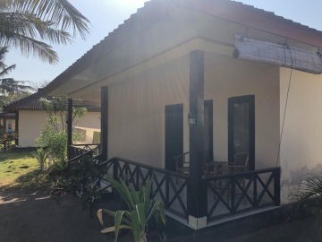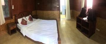 Ubytovali jsme se v Gili Turtle Beach Resort za 869 Kč se snídaní. Ještě jsme si připláceli za Bungalov Deluxe, ale bylo to strašný. Byla to vila nejdál od moře a jako jediná měla nad sebou další pokoj ve kterém bydleli asi sloni. Šlo slyšet naprosto všechno. Koupelna byla venkovní. Snídaně byli také hrozné. Nerozumí tam anglicky a donesli jen půl objednávky a to nejen nám. Ostatní hosté si také stěžovali. Po snídani jsme se šli dojíst do vedlejší restaurace.