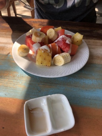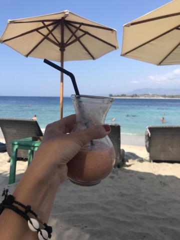 Hodně turistů, a tak se tam i chovají. Sice je to moc pěkné místo, má i lehátka ale obsluha byla velmi pomalá a znuděná. Koktejly měly ale výborný. Za smoothie a ovoce jsme zaplatili 122.000 IDR.