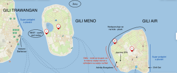 - Východní strana Gili Air – krásné potápění i plavání. Hodně turistů.