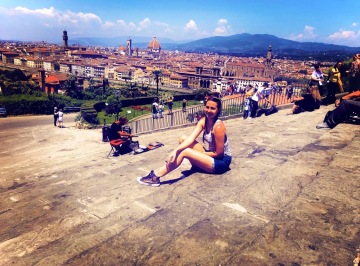Od Ponte Vecchio jsme pokračovaly pěšky na Piazzale Michelangelo, odkud je nádherný výhled na Florencii. Je tam spoustu obchůdků se suvenýry a také zmrzlina. Zpátky jsme šly pěšky k řece a přes most Ponte alle Grazie do uličky Via dei Benci, kde je výborná Ristorante Le Colonnine. Po jídle jsme míjely nádhernou baziliku Santa Croce a naše poslední zastávka před odjezdem z Florencie byla u baziliky Santa Maria Novella.