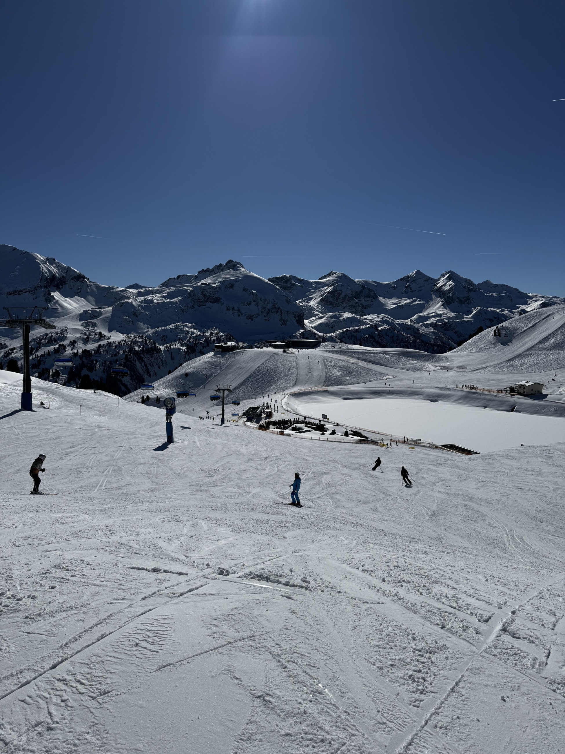 Já jsem lyžovala pouze 2 dny (1 den lyžování 60,50 euro). Nejsem moc velký lyžař, a tak mi to naprosto stačilo. Tento areál bych doporučila spíše zdatnějším lyžařům. Modré sjezdovky byli spíše na úrovni červené (část se jela v pohodě a v částech modré byli i dost prudké svahy). Některé červené byli už opravdu náročné. Na černou jsem si nakonec ani netroufla. S dětma bych sem tedy nejezdila.