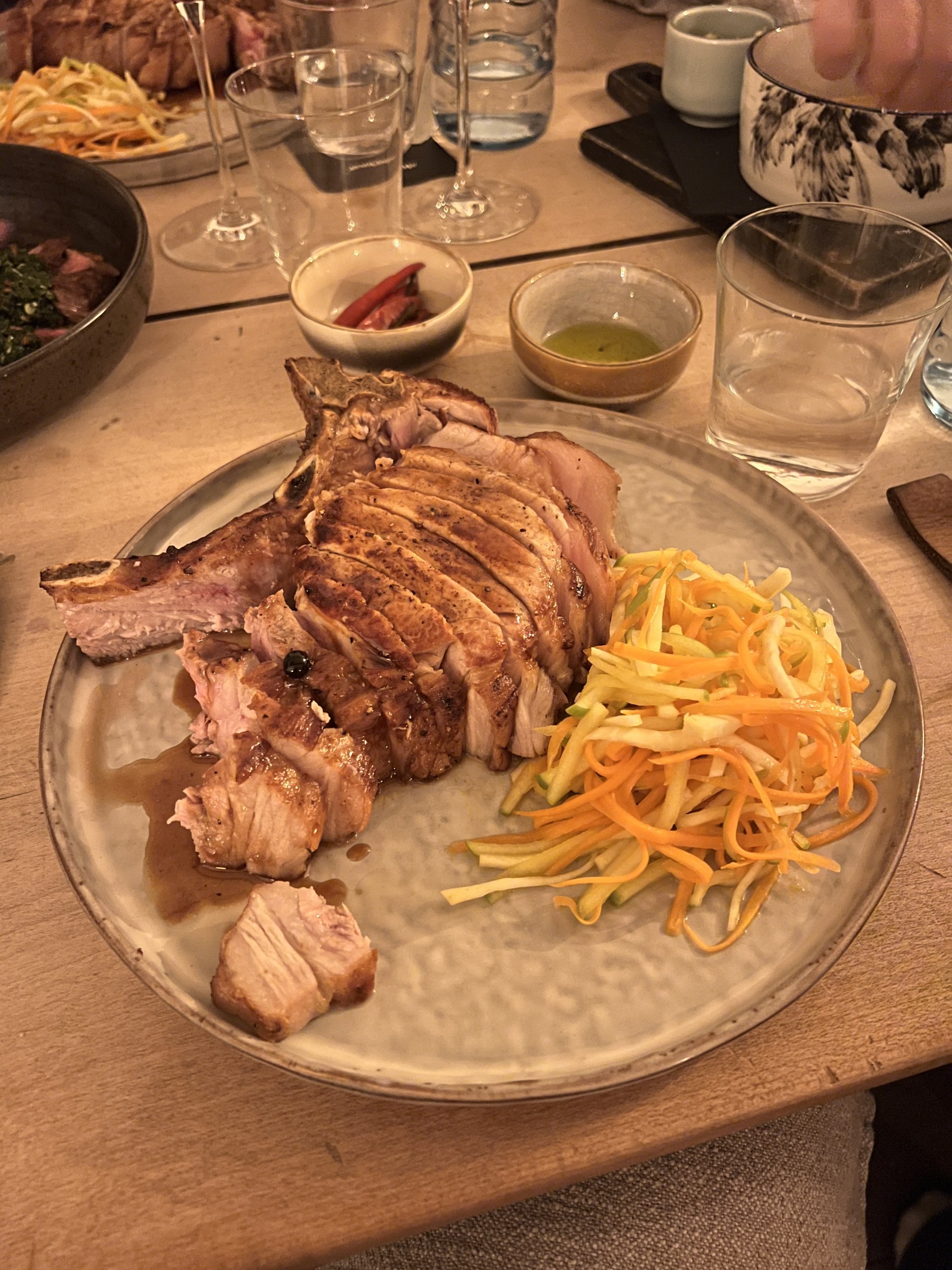 V ceně ubytování je také polopenze. Snídaně formou švédských stolů a večeře formou a la carte. Měli jsme každý cca 7 chodů – 2 předkrmy, 2 polévky, 2 hlavní chody a 1 dezert. Každý den se to měnilo, ale jídla bylo opravdu hodně.