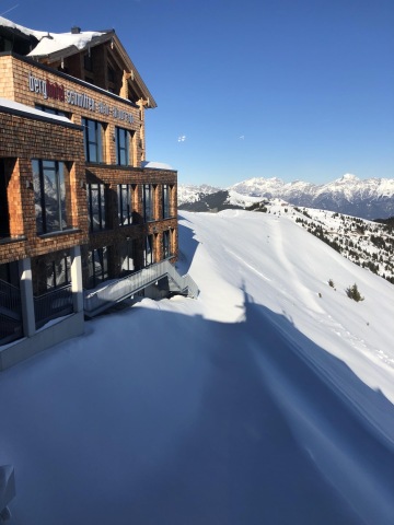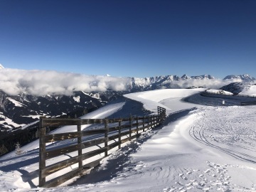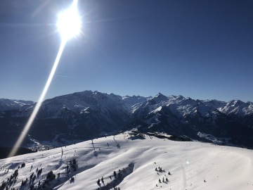 Výlet do Zell am See. Od Saalbachu je to asi 25 minut. Tentokrát už jsme nejeli lyžovat, jen se projít, zajít na oběd a drink a zase dolů. Pokud to tedy budete chtít udělat stejně tak musíte jet pouze na toto místo - jen zde si můžete zakoupit jízdenky nahoru i dolů a lanovka vás vyveze přímo k restauraci a hotelu Bergen Schmittenhöhe. Zaparkovat můžete zdarma přímo u lanovky zdarma.