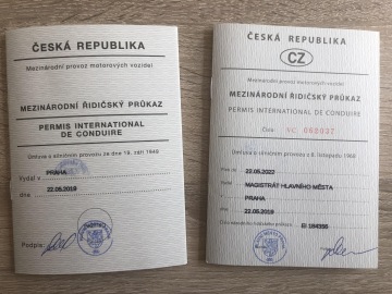 - Vlevo mezinárodní řidičský průkaz na 1 rok (se státy, co podepsali ženevskou Úmluvu).