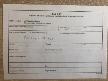 Na jednu žádost do kolonky, z jakého důvodu žádáte o řidičák? Napíšete: ženevská Úmluva. Na druhou vídeňská Úmluva.