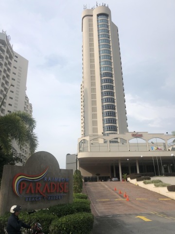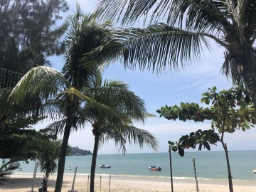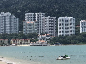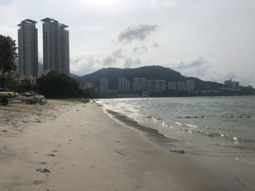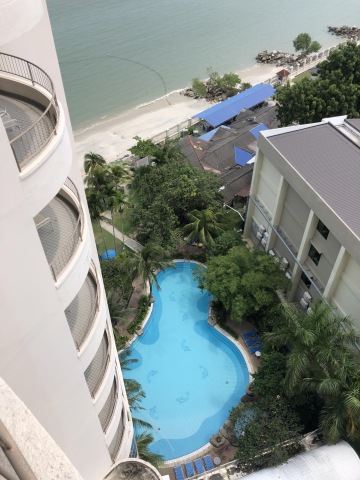 Ubytovali jsme se přes Airbnb v hotelu Rainbow Paradise na 9 nocí a noc nás stála 865 Kč. Hotel leží přímo u pláže Tanjung Bungah. Pokoj je s balkonkem a mini kuchyňkou, ve které je vše, co potřebujete k přípravě snídaně nebo nějakého rychlého obědu. V 1.patře je maličké fitness, které je pro hosty zdarma. U hotelu je bazén a půjčí vám i osušky k bazénu/na pláž. Hotel má dvě restaurace, salon, kde je kadeřnictví, manikúra, pedikúra, nebo si můžete nechat udělat řasy, obchod s oblečením, potraviny, suvenýry, pivo. Vše je v hotelu dražší než v marketech v okolí.