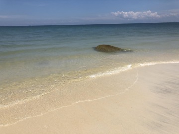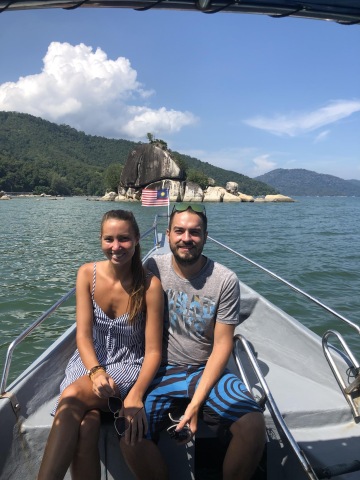Tento výlet byl velmi spontánní, a nakonec i nejhezčí. Nabídl nám ho nějaký beachboy před hotelem na pláži. Výlet trvá asi 3 hodiny a stojí 400 MYR. Vypluli jsme následující den přímo z pláže od hotelu na soukromé loďce podél pobřeží. Cestou jsme pluli kolem plovoucí rybářské vesničky. Voda je během září/října velmi teplá a kalná, proto jsou všude opravdu velké medúzy, které moře čistí. Takže se nesmí z lodí skákat do vody! Ani vám to nedovolí. Medúz jsme potkali stovky. U pláže ale nejsou, do hloubky se plavat nedoporučuje. Dopluli jsme za Monkey beach, kde začal kapitán lodi házet do moře kusy masa a najednou se z džungle národního parku slétli orli a začali se o maso doslova rvát. Bylo to nádherný. Nevěřili jsme, že orli přiletí. Byli jsme od džungle tak daleko a oni lítali nad džunglí a jen co se maso hodilo do vody všichni se slétli. Pokračovali jsme na pár míst, kde si Péťa mohl zachytat ryby. Šťastnej chytil 3 rybky, ale všechny jsme zase pustili do vody:) Nakonec jsme zakotvili na Monkey beach, kde nám připravili oběd. Jediná nevýhoda je, že všude skáčou ty šílený opice a chtějí vám všechno ukrást. Pro „obranu“ našeho jídla nám dali na stůl velkého plyšového tygra a měli jsme od opic klid. I tak jsme se pořád ohlíželi, zda po nás nejdou. Na pláži můžete být, jak dlouho chcete, vůbec nás náš průvodce neomezoval časem. Je to opravdu nádherná pláž s jemným pískem a krásnou přírodou v okolí.