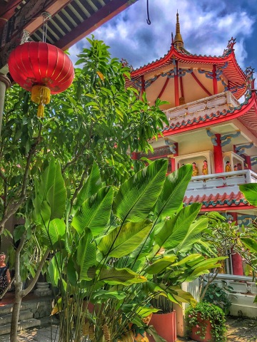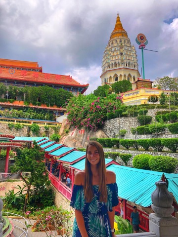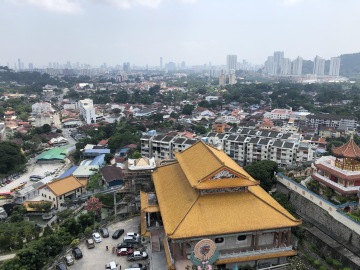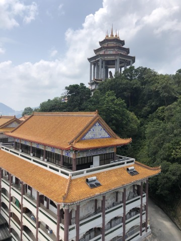 Ikonický chrám Penangu nad George Town. Dostanete se k němu buď autobusem, který tu stojí 2-4 MYR z centra města z autobusového nádraží nebo GRABem. Pokud pojedete autobusem, tak ten vás odveze pouze pod lanovku. Za 3 MYR na osobu si vyjedete nahoru nebo můžete jít i pěšky. Za to Grab vás vezme až na parkoviště nad lanovkou. Chrám je zdarma, jen vstup do Pagody (věž) je zpoplatněn 2 MYR (cca 11 Kč) na osobu.