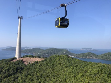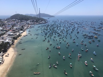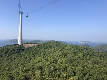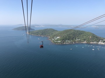 Tahle lanovka je krásnej zážitek! Kdo se bojí výšek, tak ať sem vůbec nechodí a na ostrov Hon Thom radši pluje lodí (jak se dostat na ostrov lodí, najdete v tomto článku níže). Když přijíždíte k lanovce, tak jsme projížděli stavbou, nyní je to však úplně "nové" městečko malovaných domků. Je tam pláž, Kiss bridge, Kiss the star Signature. Tahle část určitě také stojí za prohlídku. Na ostrově je aquapark, pláže, restaurace... Jezdí tam takové ty otevřené autíčka a jsou zdarma, tak je určitě v tom vedru využijte. My to využili po cestě zpět z pláže k lanovce. Cesta trvá pár minut, je to asi 1,5km do kopce.
