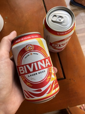 Pivo a kokos na pláži = 40 000 VND = 37 CZK
