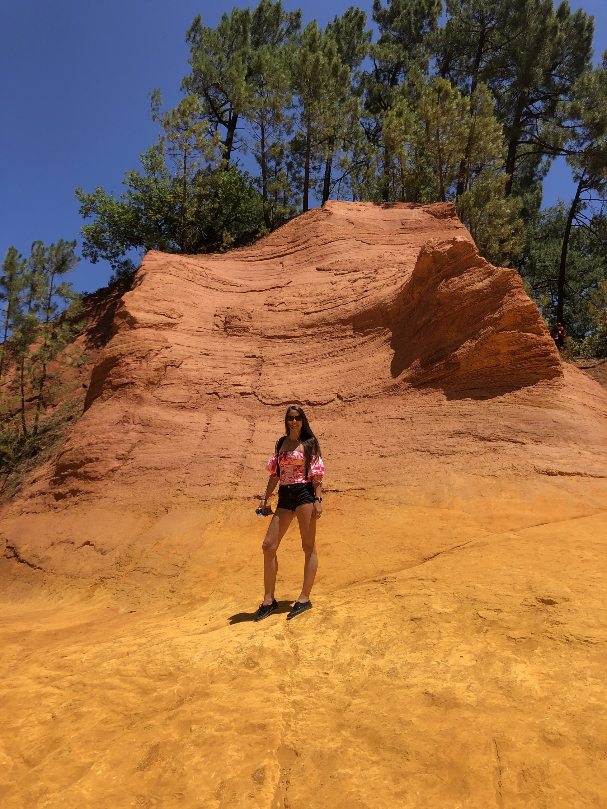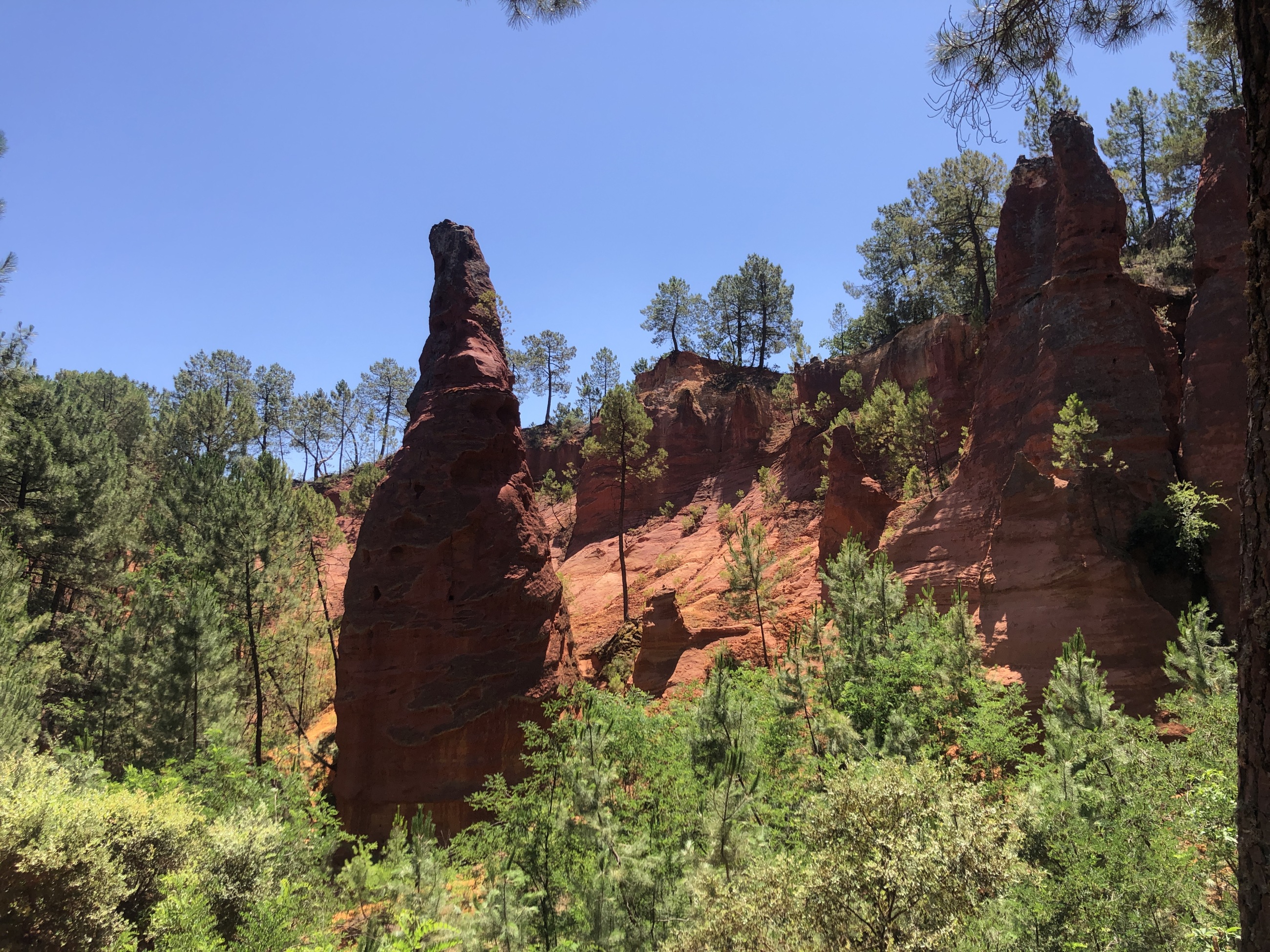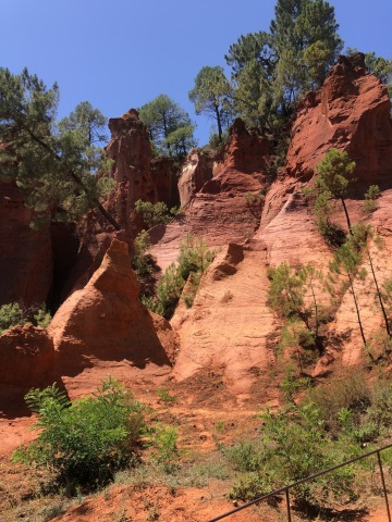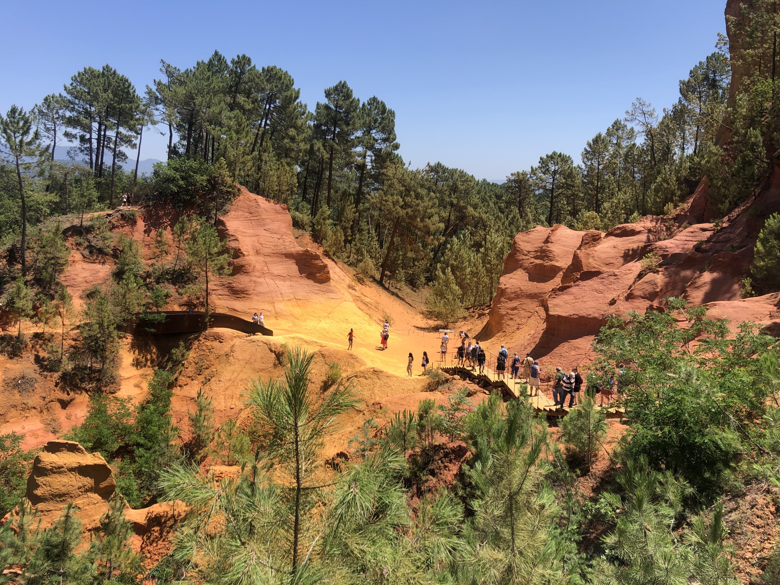 Za mě jedna z nejhezčích zastávek v Provence. Městečko Roussillon leží na skalní plošině, má kouzelné staré uličky a nádherný výhled. Jezdí se sem ale především na okrové kopce. Vstupenka na osobu je 3 euro. Můžete si vybrat ze 2 cest - kratší (35 min) a delší (50 min). Obě jsou velmi jednoduché a v té delší nepotkáte skoro žádné lidi a za to větší skály.