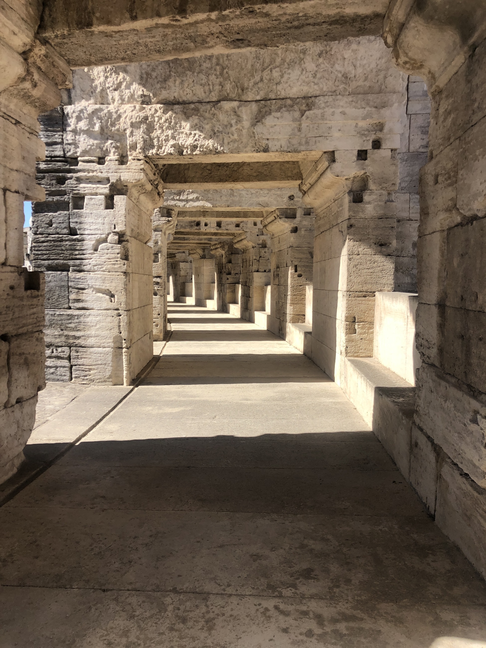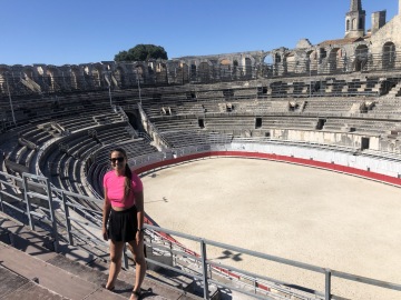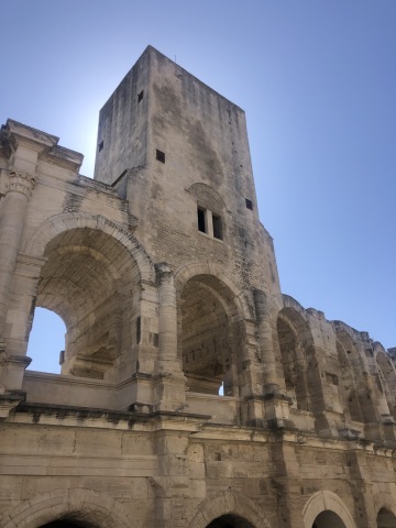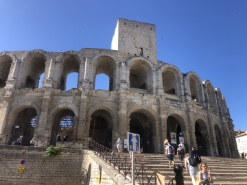 V Arles je obrovská arena, kam se vejde až 20 000 diváků a 2x ročně se zde konají "býčí zápasy". Je to spíš taková honička mezi býkem a matadorem, který musí z rohu býka sejmout kokardu. Arena byla postavena v 1.stol.