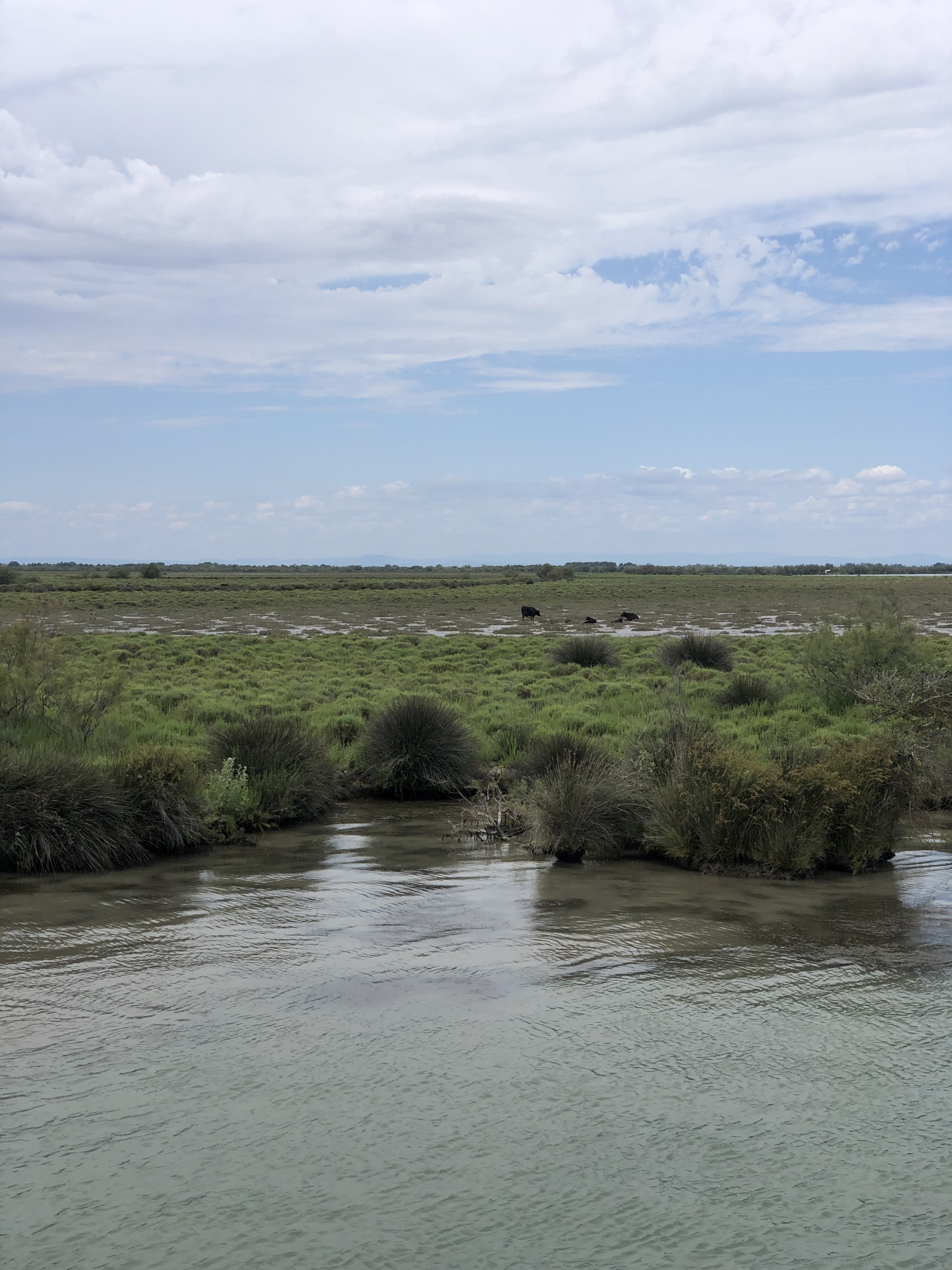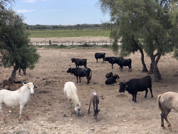 Typické pro tuto rezervaci jsou camargueské volně pobíhající bílé koně, černí býci, růžový plameňáci, mokřiny a bažiny.