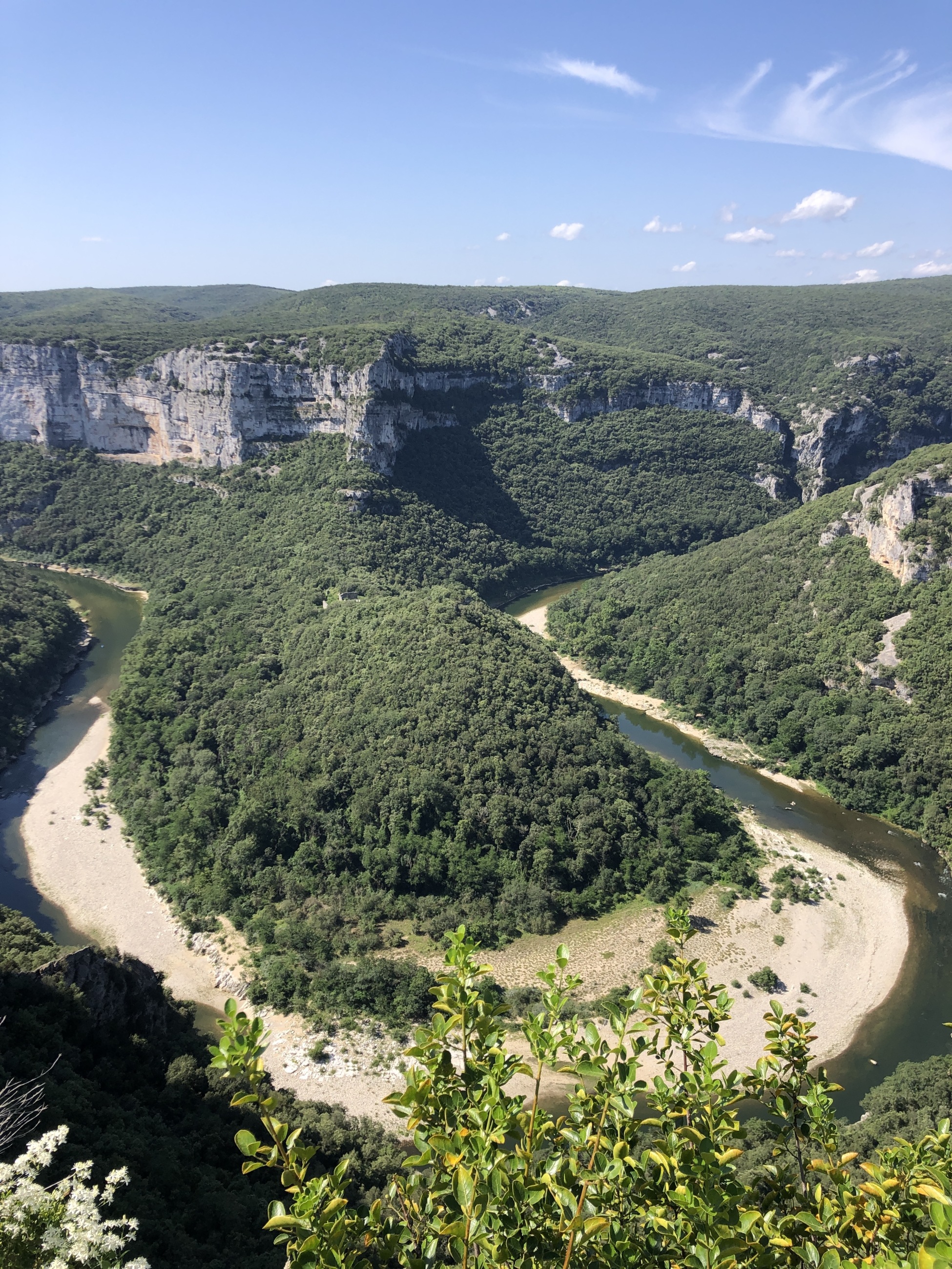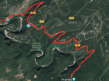 Kaňon ředy Ardeche je cca 30 km dlouhý a jeho vápencové skály podél řeky jsou vysoké až 300 metrů. Kaňon lemuje silnice s vyhlídkama. Cesta je klikatá a komu se dělá v autě/autobuse zle, tak si radši vemte pytlíky :) Níže jsem přidala mapky, na obrázku je červeně zakreslená cesta, kudy vede silnice. V některých místech je to opravdu zážitek, např.když se potkají dva autobusy.