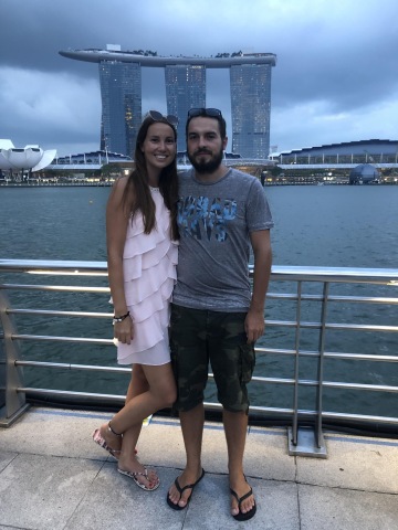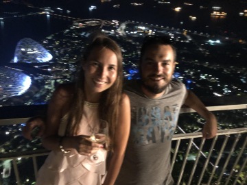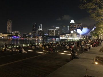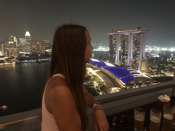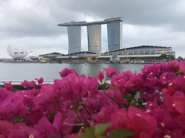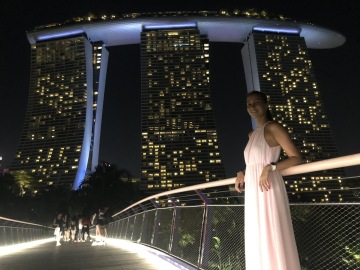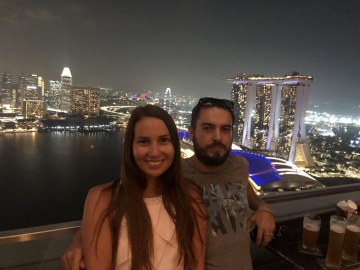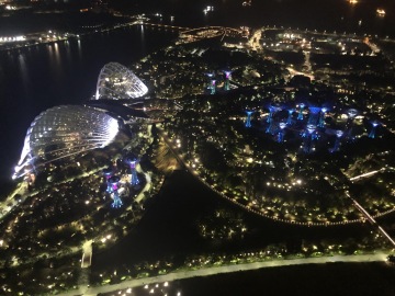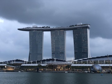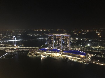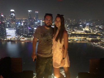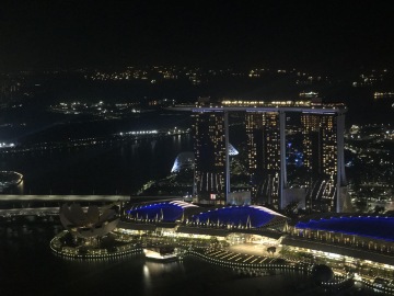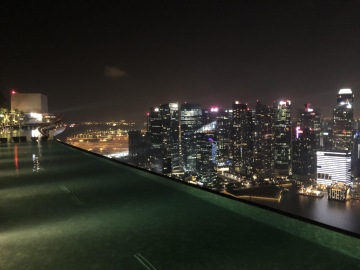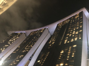 Jeden z nejslavnějších hotelů na světě. Tři mrakodrapy spojující loď na střeše, na které je bazén s výhledem na město. Hotel má několik barů a diskoték. My navštívili Ce La Vi, kam ale musíte mít rezervaci, dole před výtahem byla nekonečná fronta. Naštěstí tam má Linda známý a byli jsme na Guest listu a jeli rovnou nahoru. Když jsme přijeli nahoru, tak nám ani nepřišlo, že jsme na střeše tak slavného hotelu. Jen ty ceny tam nám to připomněli. Za sklenku vína 30 Singapurských dolarů. Lindy známý nás provedl po střeše hotelu a ukázal i jiné bary a krásné výhledy.