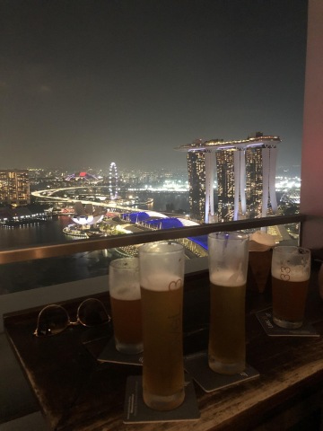 Nejvýše položený minipivovar na světě naproti Marina Bay Sands na Marina Blvd v Marina Bay Financial Centre Tower 1. Doporučuje se sem udělat rezervace, ale my jí neměli a v pohodě jsme se sem dostali. Tak to můžete také risknout. Dokonce jsme i chytli stolek s výhledem přímo na hotel s bazénem na střeše.