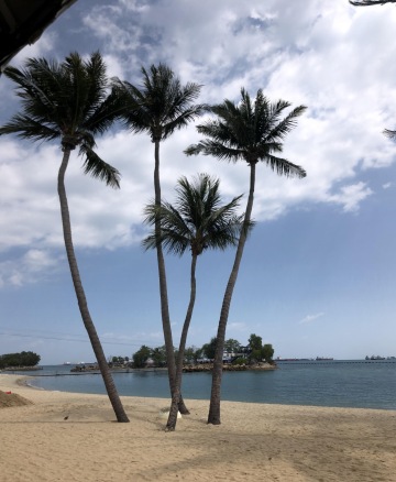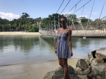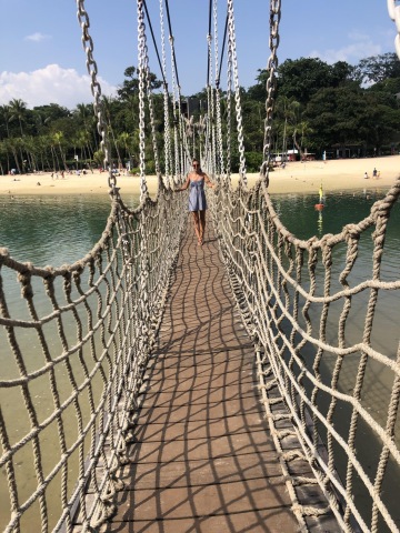 Když přejdete ostrov na druhou stranu, tak tam jsou 3 pláže. Tanjug, Palawan a Siloso. Mezi těmito plážema jezdí zdarma autobus, a tak můžete navštívit klidně všechny tři. Byla jsem na pláži Palawan, ze které můžete jít přes lanový most na ostrov Palawan. Pláž je moc pěkná, ale přelidněno. Má to jednu nevýhodu. V okolí Palawan beach není žádné občerstvení!! Za mě doporučuji Siloso beach. Je to klidnější pláž a není na ní tolik lidí. Dokonce jsme tam byli v době, kdy tam byla výstava soch z písku a všude byli postavičky ze Star Wars. Výstavy jsou zdarma a konají se zde - mapa.