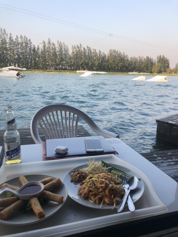 Jediné ubytování, které tu je, se jmenuje Hotel Ride’n’Lazy. Je to přímo ve Wakeparku, nic v okolí není (nebo jsme to alespoň nedohledali). Na týden tu jsou ceny od 6.625 bahtů (4400 Kč) za nejzákladnější pokoj. Za pokoj Superior je to o cca 500 bahtů na noc víc.