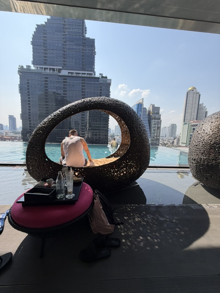 Trochu dál od centra, ale je to přímo na metru, když už Bangkok máte prochozenej a nepotřebujete vidět ty nej památky v centru, tak je tohle dobrá lokalita. Na 2 noci nás stál pobyt cca 6000 Kč, vč.snídaně pro 2 osoby/1pokoj. Hotel je nádherný, super služby, v ceně je parkování v garážích. Snídaně byli hodně bohatý (v 5.patře), asi jsem nikde neviděla takto bohaté snídaně. Spousty ovocných šťáv, polévek, masa, je tam nekonečný výběr. Na snídani vás vždy usadí, každý má přiřazený stůl. Snídaně byli do 11:00 a check out do 12:00. Fitko je nonstop. Bazén cca 8-22. U bazenu svítí slunce tak od poledne, ale pokud chcete sedět v tom "vajíčku" tak to si ho bězte zabrat už před polednem - na ty "vajíčka svítí slunce tak od 14:00. Bazen s fitkem je ve 14.patře a také tam vaří, ceny jsou jak v Praze, jídlo je ale skvělý. Hotel je přímo na Sky train na zastávce Surasak - ve výtahu jeďte do 3.patra a běžte směrem Sky train. Jeli jsme jen jednu zastávku k řece a stálo to 17 thb /1 jízdenka.