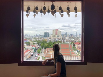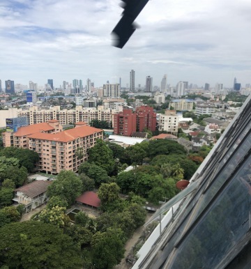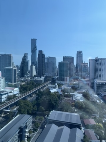 V měststké části Sathorn - je to trochu dál od centra a cesta k metru je děsivá. Ubytování je tam ale moc pěkné, na to, že to je přes AirBnB, tak nám každý den uklízeli. Pokoj je v 17.patře se skvělým výhledem na celý Bangkok. V 5.patře je bazén a fitko, které můžete kdykoliv využívat.