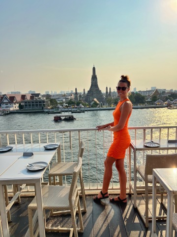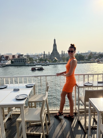 S nádherným výhledem na chrám Arun. Doporučuji si sem udělat rezervaci. Pokud ji nemáte, tak doražte nejpozději do 17.h, od 17:30 bývají rezervace. Jídlo dražší, ale moc dobré.