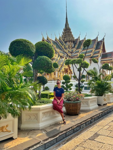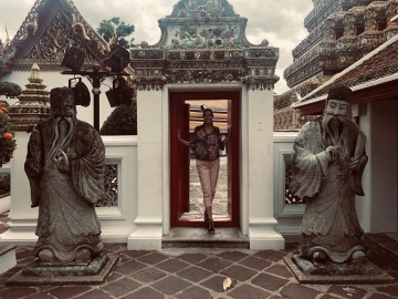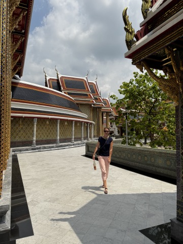 Je to chrám, takže žádné tílečka a kraťásky. Holky zahalená ramena a dlouhé sukně nebo kalhoty.