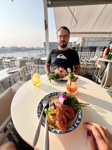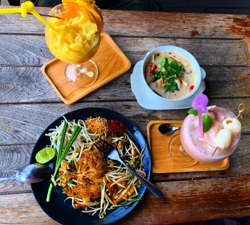 Tak tady jsme ochutnali nejlepší Pad Thai a nejlepší ovocné smoothie. Nejen, že to skvěle vypadá, ale to jídlo je tu naprosto bezkonkurenční. Nachází se u řeky u přístavu Rajinee. A za dvě jídla a dva drinky tam necháte 700 THB i s dýškem.