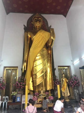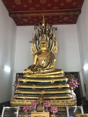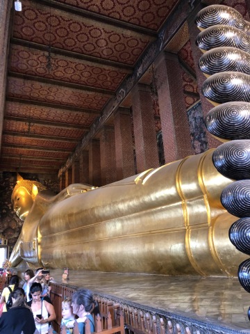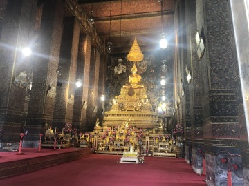 Je to nejstarší chrámový komplex v Bangkoku. Najdete tu pozlacenou sochu ležícího Buddhy.